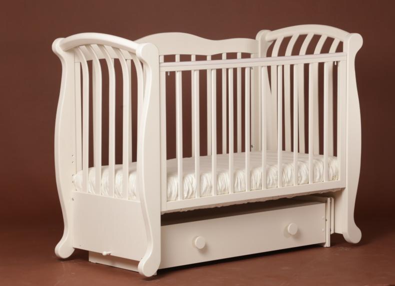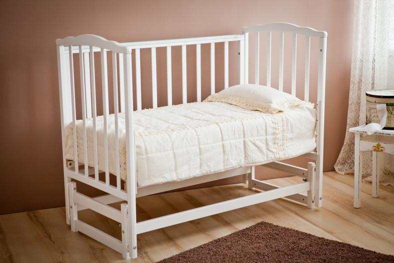 Хорошая детская кроватка с маятником изготовлена из натуральной древесины. Природные материалы не вызовут аллергических реакций у ребенка. Дерево покрыто лаком, который изготовлен на основе воды. Он также не вызовет аллергии.