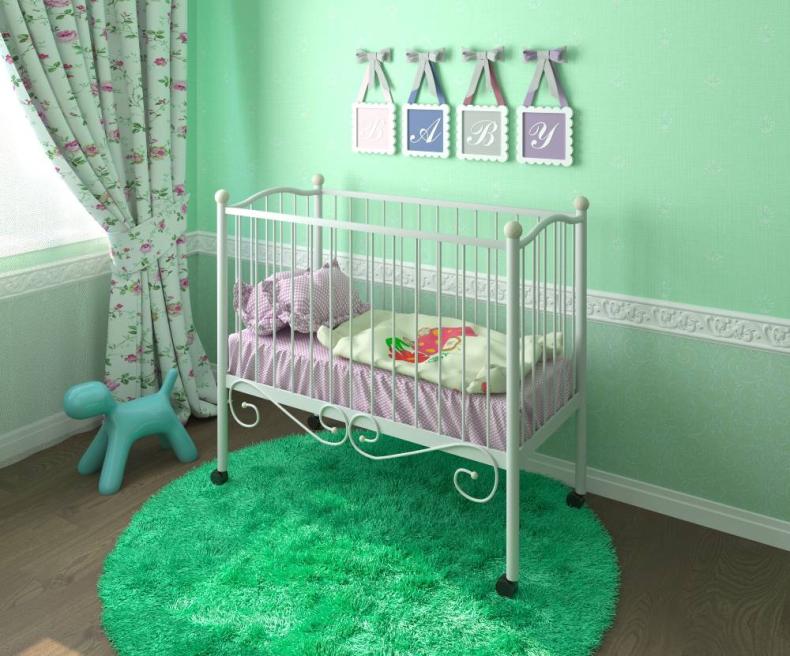 Металлическая конструкция спального места — надежный и вполне безопасный вариант. Правда, выглядит она не очень уютно и на ощупь не слишком приятна. В моделях из металла очень пригодятся текстильные бортики.