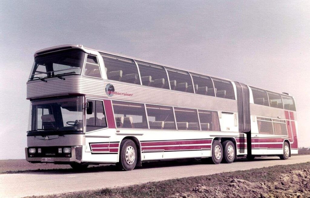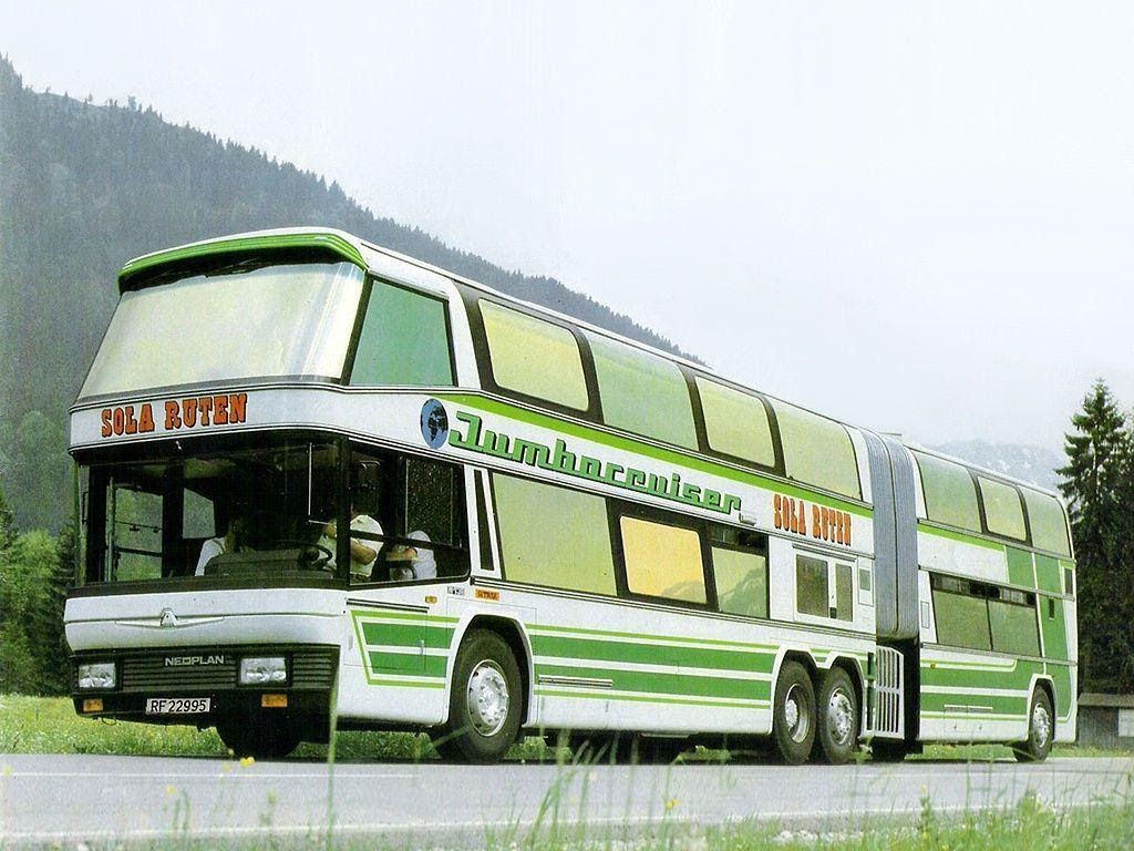 Знаменитый двухэтажный автобус повышенной вместительности, рассчитанный на 103 посадочных места. Neoplan Jumbocruiser стал результатом работы немецких инженеров, которые известны своей скрупулезностью и щепетильностью. Стоило модификации Jumbocruiser появиться в рамках мирового автопрома, как несколько сотен перевозчиков изъявили желание его перевезти. Длина этого гиганта -18 метров, а высота – 4 метра. Это единственный крупногабаритный сочлененный автобус, который можно встретить на улицах европейских городов. В основном, Европа с ее узкими улочками отдает предпочтение компактным и быстрым микроавтобусам.