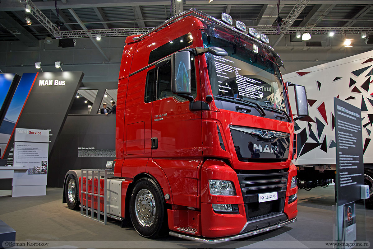Грузовик MAN TGX спроектирован для большегрузных перевозок (в том числе и по бездорожью). Авто с дизельным двигателем в 640 л. с. отличается от конкурентов панорамным обзором через большое лобовое стекло и дополнительным комплектом зеркал, полностью исключающим «слепые зоны». Рабочее место тягачей сконструировано эффективно, обеспечивая водителю работу без переутомления и комфортный отдых. Кабины грузовиков MAN TGX в максимальной комплектации имеют высоту около 2 метров, водитель может стоять внутри в полных рост. Также они имеют двухъярусные спальные места.