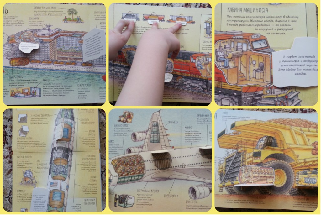 И описания такие занимательные и простые, что понятны даже ребенку. Открывая окошки и клапаны, дети смогут узнать, что внутри у этих гигантов.