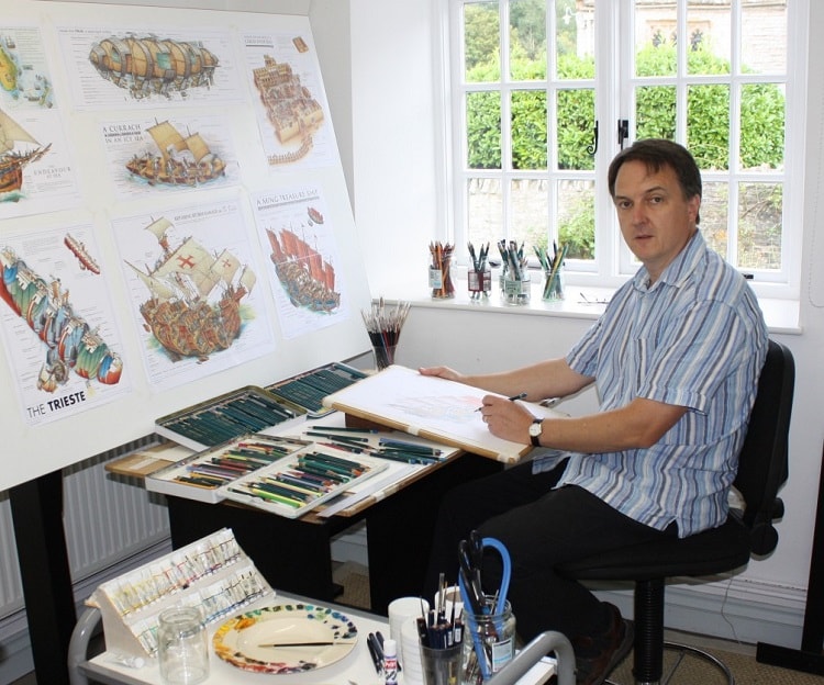 И у него получались удивительные картины, на которых он виртуозно изображал сечения всевозможных сооружений (танка Т-34, галеона, космического челнока, знаменитых зданий).