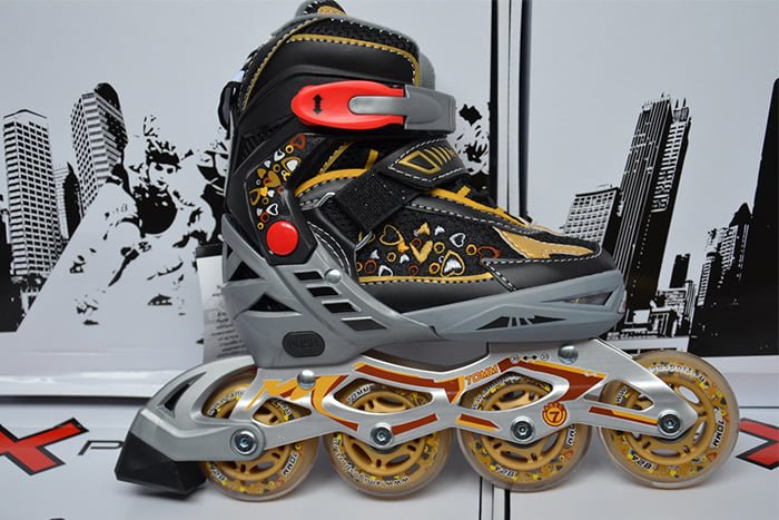 Рама роликов изготовлена из алюминия, который не только придает прочность изделию, но и снижает его вес, а это так важно для полноценного выполнения трюков. Экипировка позволяет разогнаться до высоких скоростей, особенно эффективно поддерживается скорость на ровном покрытии