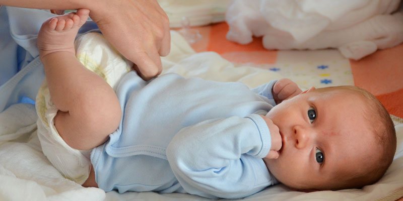 - во время бодрствования, а также при болезни с повышенной температурой держать малыша без памперса.