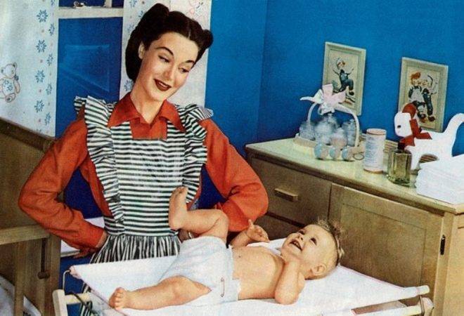 В 1946 году американская домохозяйка Марион Донован изобрела подгузник: из занавески для ванной, которая не пропускала влагу, она сделала непромокаемый чехол, который должен был предохранять пеленки от загрязнения. Усовершенствованная версия была выполнена из нейлона и застегивалась на пластиковые кнопки.