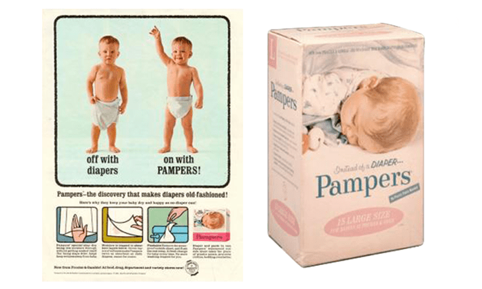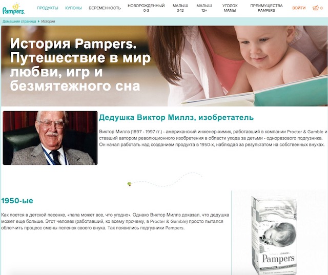 Первые попытки создания такого продукта для домашнего использования пришлись на 50-е годы прошлого века, но когда Виктор Миллз понял, что ему удалось придумать чертовски удобную вещь, он тут же решил запустить ее в производство. Уже в следующем десятилетии подгузники Pampers заполонили прилавки магазинов, но по тем временам это был продукт настолько непохожий на все остальное, что ему сложно было выбрать какой-то отдел, так что продавались эти средства по уходу за ребенком даже в продуктовых отделах. Что интересно, в официальной истории бренда признается заслуга в распространении новомодного изобретения благодаря хиппи и сочувствующей им молодежи, ведь такие люди не считали, что рождение ребенка обязывает женщину сидеть в четырех стенах.
