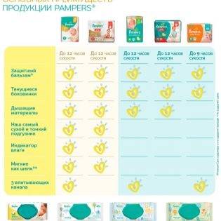 Размеры памперсов Рampers premium care и Рampers active baby dry