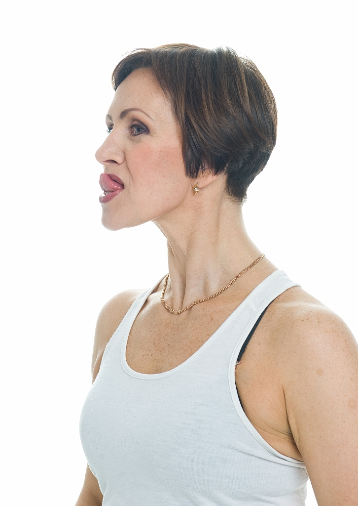 Например, если вы хотите убрать второй подбородок или просто подтянуть мышцы нижней части лица, то делать нужно так: закинув голову назад, вытащите язык и попробуйте дотянуться им до подбородка. Повторять не менее 20 раз.