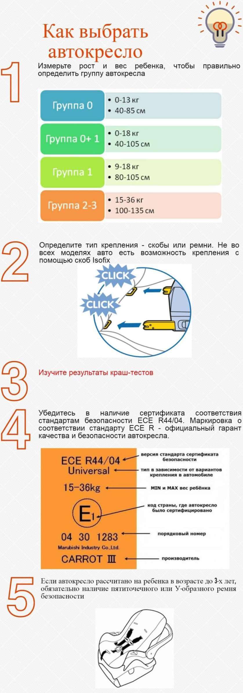 Приобретая автокресло, родители должны знать, что Европейской Экономической Комиссией Организации Объединённых Наций разработан специальный стандарт безопасности для подобных изделий.