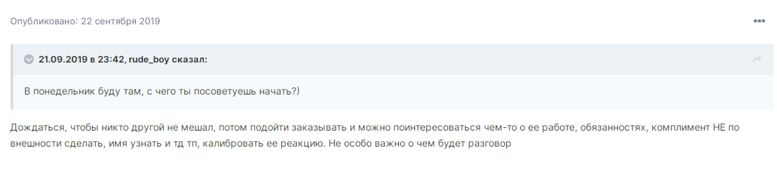 Еще пример с форума https://forum.pickup.ru/topic/176561-советы-milf/. Это совет молодому мужчине, который ходит в кафе, где работает привлекающая его милфа, и не знает, как с ней заговорить: