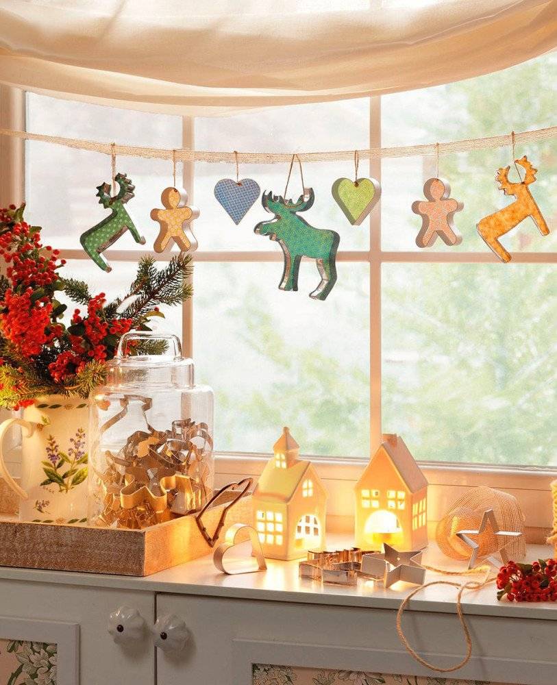 Чтобы создать уютную, сказочную атмосферу в доме, разместите на окнах гирлянды в виде сетки. Не менее оригинально смотрятся гирлянды, сделанные своими руками. Чаще всего для их создания используется бумага, ленточки, шишки или елочные игрушки небольшого размера.