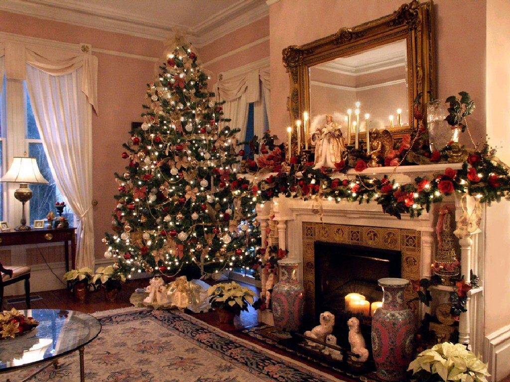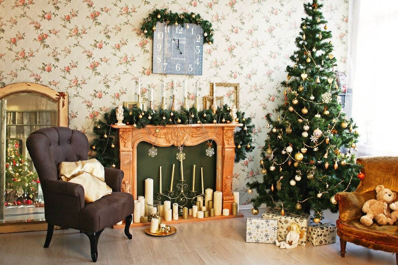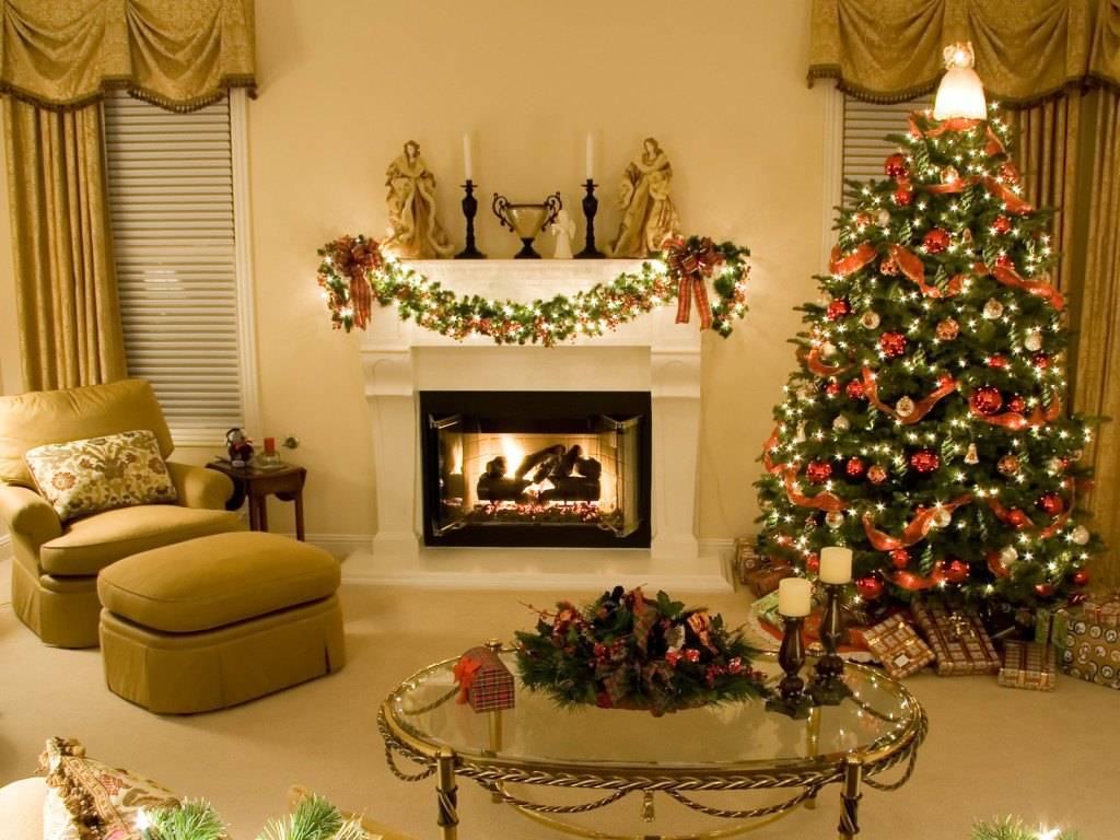 Если в зале есть камин, то в процессе украшения точно не возникнет проблем. Ведь сам по себе он создает атмосферу теплоты и уюта, поэтому в помещении всегда приятно находиться.