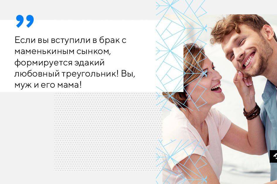 — Маменькины сынки могут быть очень компетентные в своей сфере деятельности и на работе могут великолепно справляться с критикой. Они прекрасно видят разницу между делом и человеком. Но в тот момент, когда вставляют ключ в замочную скважину домашней двери, происходит превращение.