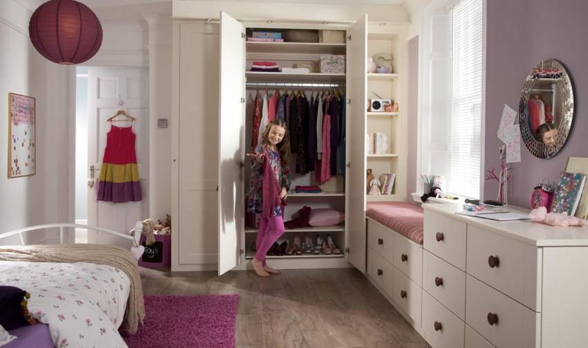 Детям проще и удобнее пользоваться шкафами с распашными дверьми высотой не больше 2000-2100 мм от пола. Хотя натренироваться двигать раздвижные двери дети могут легко, но при наличии в одной комнате более двух детей в случае активной и подвижной игры двери-купе могут представлять некоторую угрозу для их рук и ног.