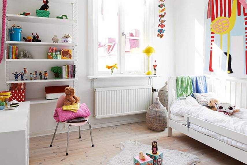 В многоквартирных домах детскую зачастую располагают по соседству рядом с самым теплым помещением — кухней, так как смежная стена всегда будет теплее остальных. В двухэтажных домах детские размещают на верхних этажах подальше от грунта. Для детской лучше не выбирать угловое помещение, которое, как правило, имеет увеличенные потери тепла. Если нет такой возможности, тогда стоит оснастить батареями две смежные стены. Одному ребенку следует выделить место от 5,3 до 6,3 кв.м, двум — соответственно.