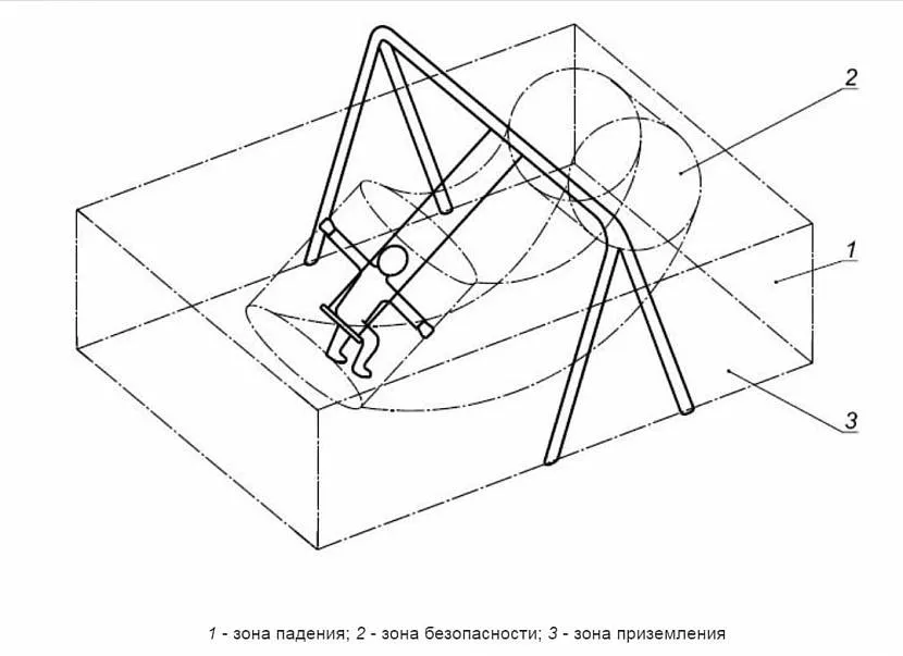 Зоны качелей по ГОСТ Р 52167-2012Источник files.stroyinf.ru