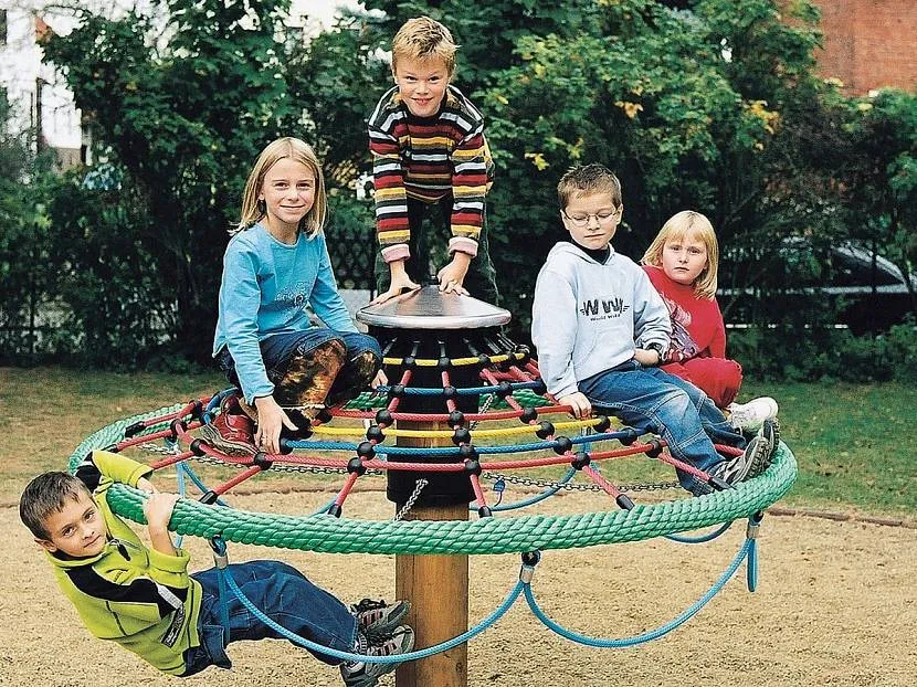 Безопасная карусель для детской площадкиИсточник www.huck-seiltechnik.