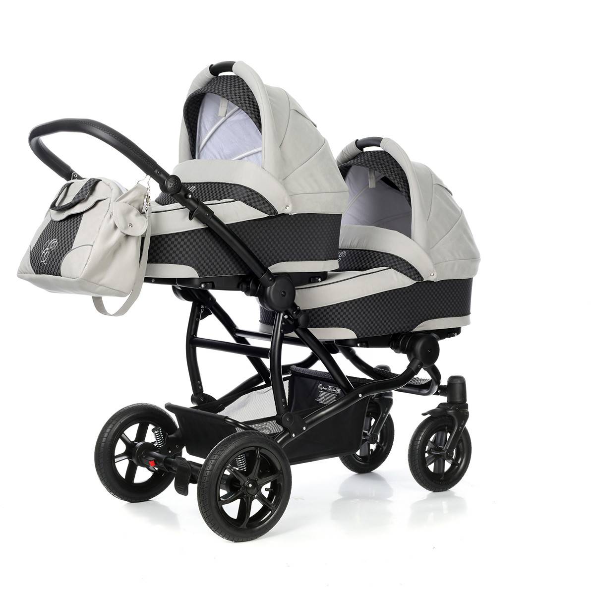 - Цены на коляски для двойни 2 в 1 разные, можно взять качественную модель, например, польской коляски в районе 37 000 рублей в полном комплекте для двойняшек. Верхний предел не существует, потому что вы можете всегда сделать индивидуальный пошив модели и уже тогда определить окончательную стоимость.
