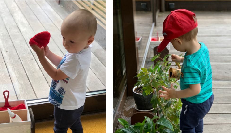 Дайте личные лейку, пульверизатор и набор для мытья стекла, чтобы малыш мог получить положительный опыт взаимодействия с водой. Тогда не придётся нервничать, что он выливает воду из вазы на пол или пытается побрызгать освежитель воздуха