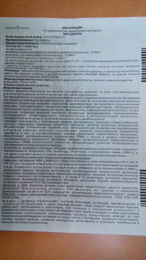 Немаловажно и то, что все составлявшие эргоферона действуют в комплексе, усиливая и дополняя друг друга. Поэтому препарат считается столь эффективным на всех стадиях профилактики и лечения вирусных заболеваний