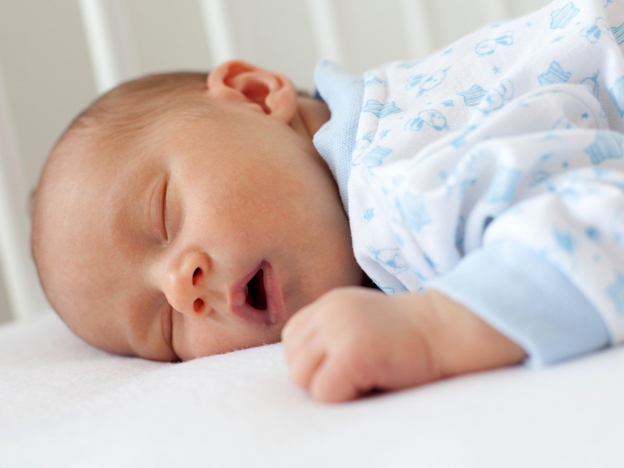 - дыхание спокойное, в лежачем положении и во сне малыш сопит носом и приоткрывает рот из-за небольшого скопления слизи;
