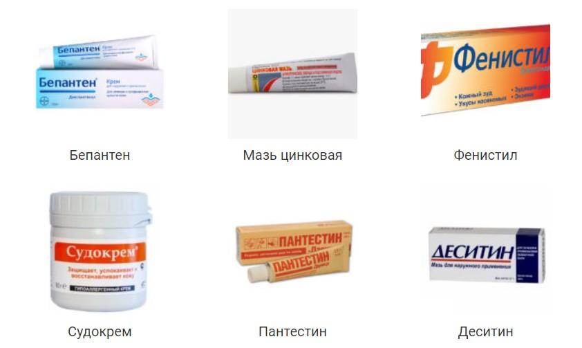 - Использование медикаментов и других средств, назначенных врачом. Иногда допускаются отвары лекарственных трав, но только тогда, когда врач это разрешил. В остальном используются специально подобранные мази, присыпки и другие лекарства. В сложных случаях могут применяться противогрибковые препараты, мази на основе антибиотиков — но родителям не стоит приобретать подобные средства самостоятельно.