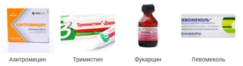 Консервативное лечение предполагает использование медицинских препаратов, направленных на снятие воспалительных процессов и гиперемии, устранение патогенных микроорганизмов, уменьшение болевых ощущений и жжения, интенсивное восстановление клеток эпидермиса.