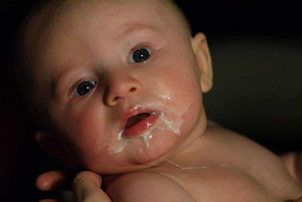 В определённые периоды, например, когда прорезываются зубы, дети учатся ползать или начинают есть твёрдую пищу, ребёнок много срыгивает после кормления.