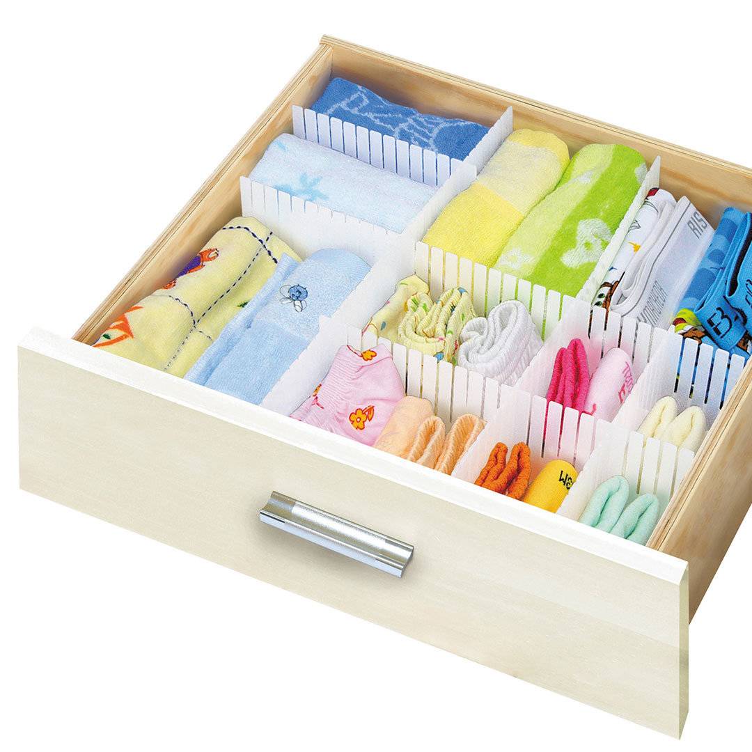 Для оптимизации места в детском комоде можно использовать яркие и веселые разделители, что сделает процесс сортировки проще. Для нижнего белья и бюстгальтеров, которые нельзя складывать, лучше выделить отдельную часть ящика.