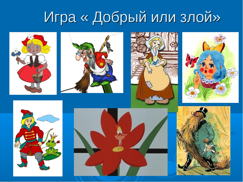 Дети кладут на одну сторону весов таблички с надписями, обозначающими зло, а на другую — мелкие игрушки сказочных положительных героев. Весы должны перевеситься на сторону добра.