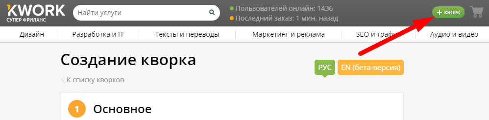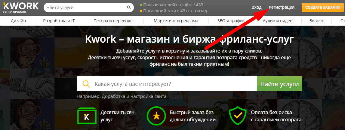 Итак, перейдём к практической части курса и заработаем первые деньги на бирже KWORK. Просто повторяйте то, что описано в этом разделе.