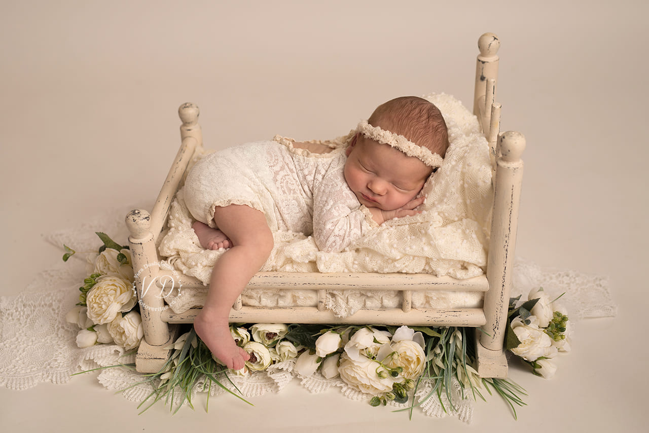 Новой модной тенденцией в детских фотосессиях стали кукольные кроватки, которые уверенно оттеснили хит прошлых лет – корзинки.