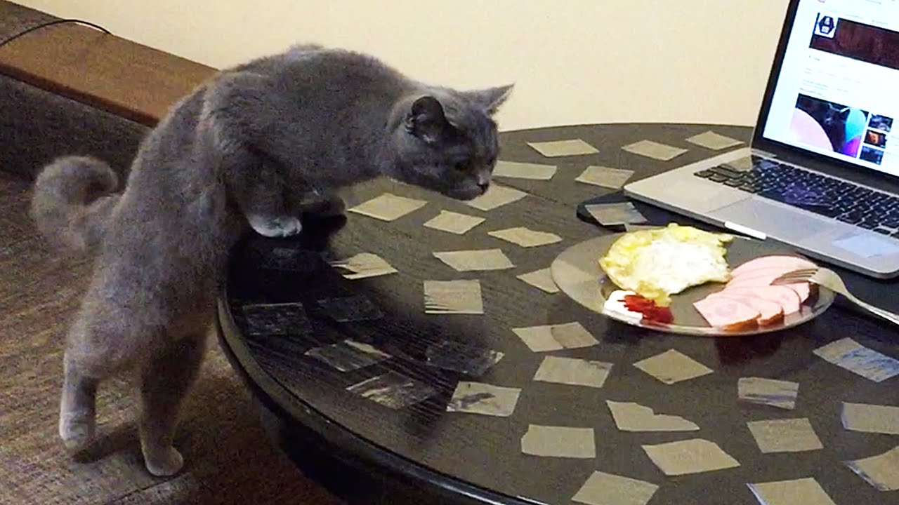 10. Если кот привык запрыгивать на стол, отучить его это делать поможет двухсторонний скотч, приклеенный на поверхность стола.