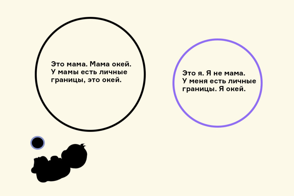 Этот цикл может повторяться множество раз и в самых разных ситуациях — ровно столько, сколько психике ребенка требуется для усвоения того факта, что у матери есть личные границы, за которые она его не пускает.