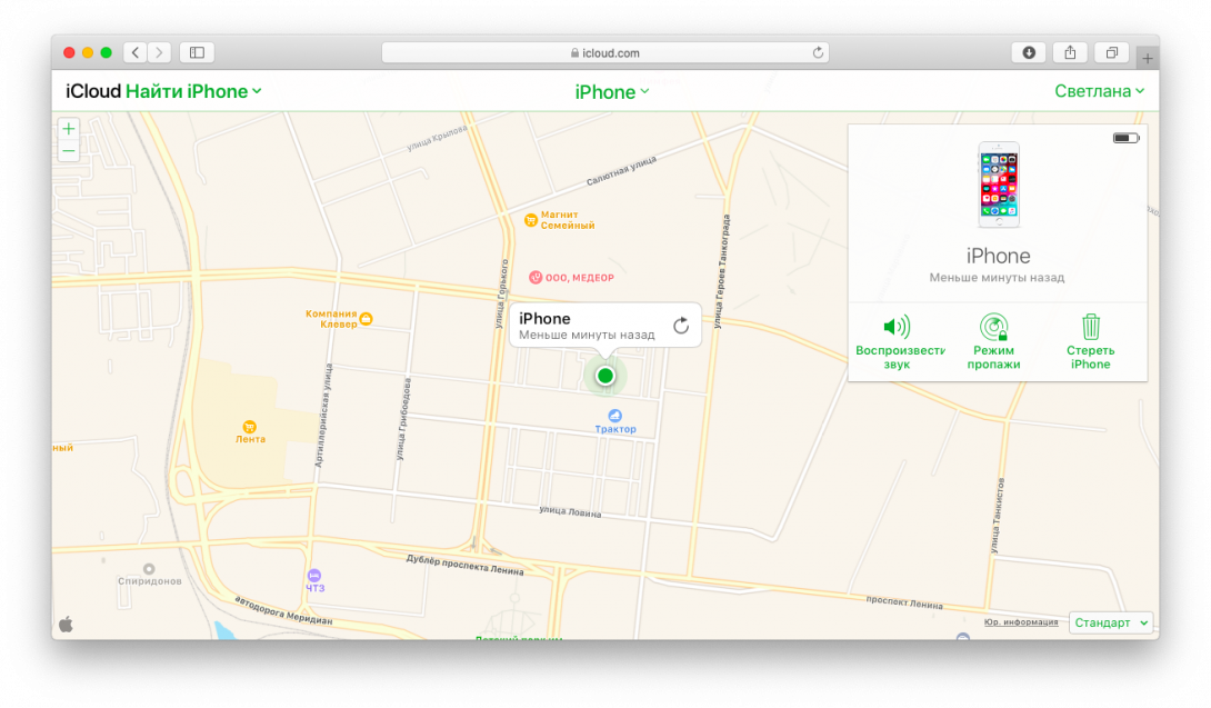 Местоположение телефона можно будет увидеть в айклауде во вкладке «Найти айфон»: