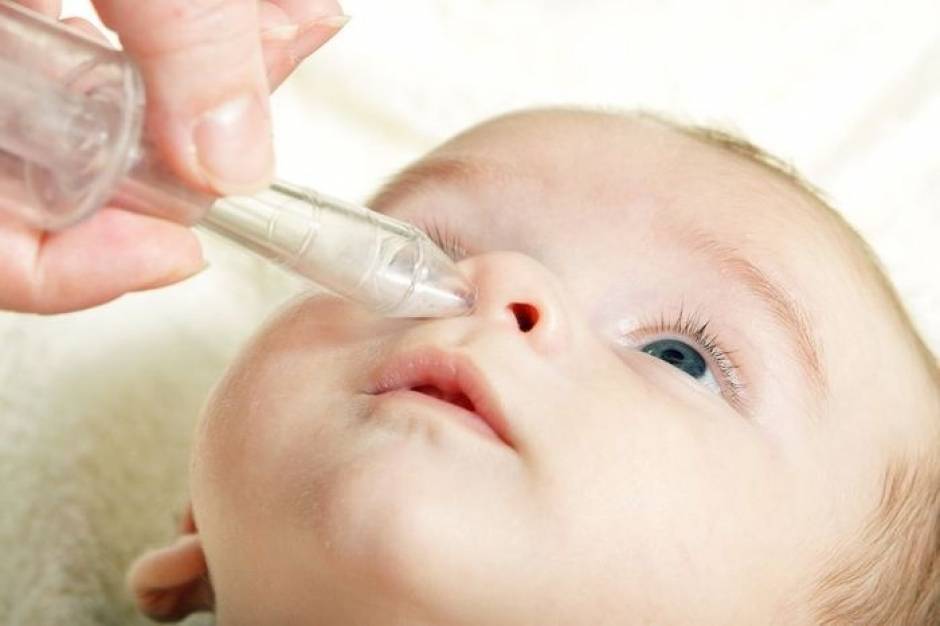 Если в полости носа скапливается густая слизь — перед проведением аспирации можно закапать в нос крохи специальные солевые капли: