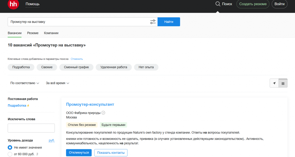 На hh.ru тысячи объявлений, в том числе для неквалифицированных сотрудников, но от площадки приходит много писем. Часто присылают приглашения не по профилю.