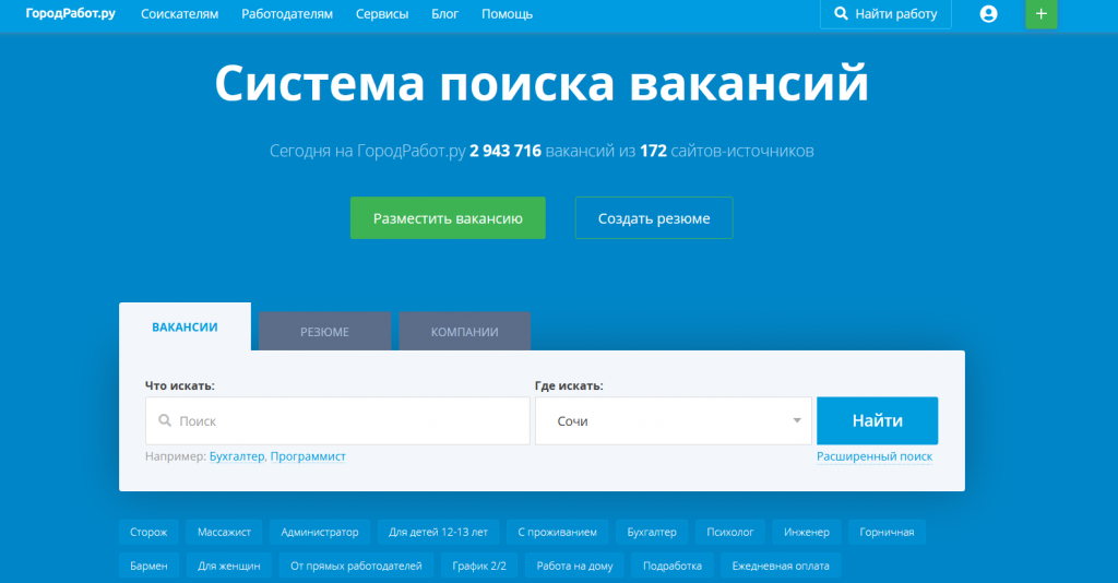 ГородРабот.ру: площадка выступает, в том числе и как агрегатор, который собирает вакансии с других ресурсов.