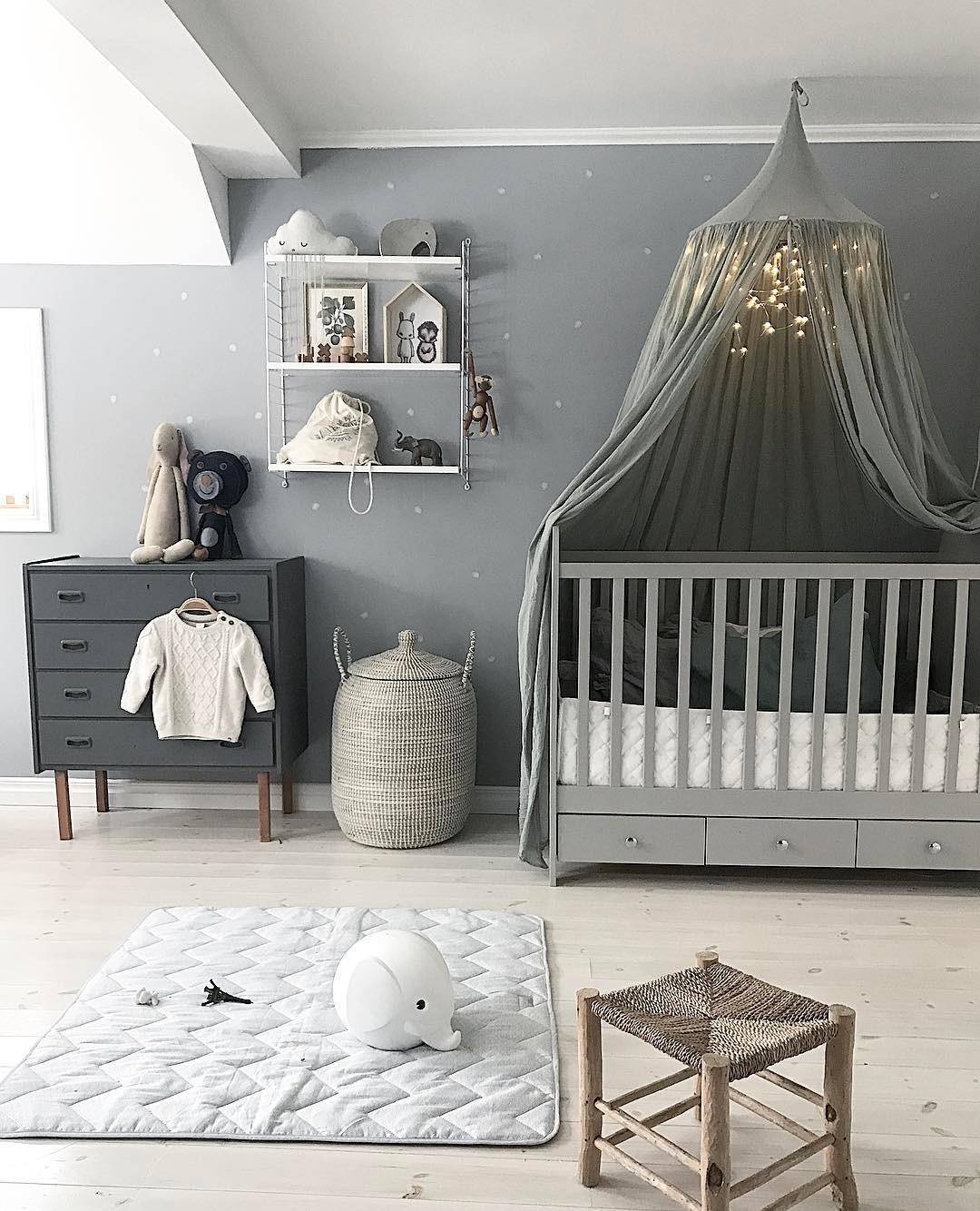 Многие мамы предпочитают скрывать своего кроху от посторонних глаз при помощи балдахина. Это специальный полог, расположенный на особом держателе, сшитый из лёгкой натуральной ткани. Если есть способности и немного свободного времени, бортики и балдахин можете сшить самостоятельно, приобретя лишь держатель для полога.