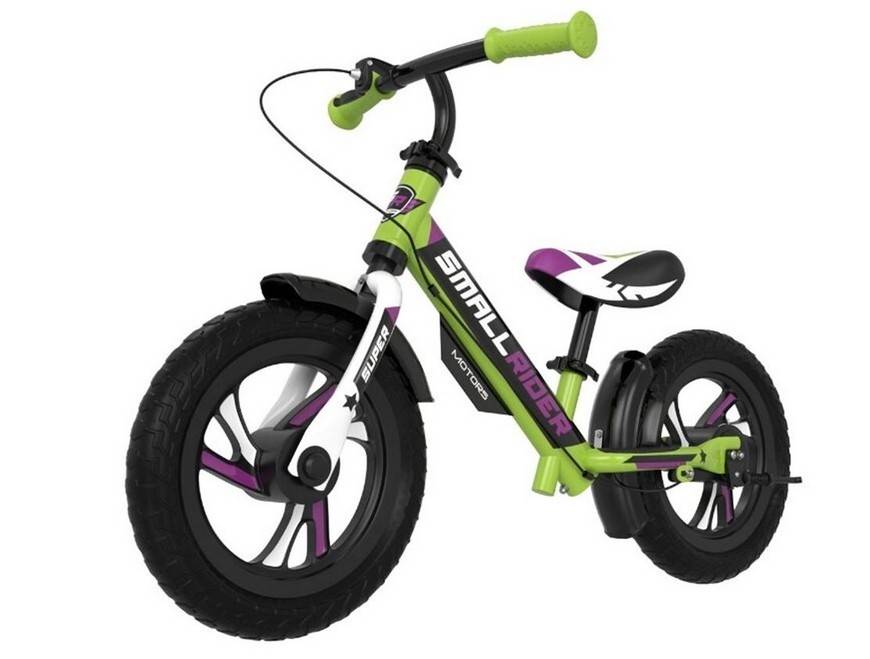 Это своего рода прогулочный вариант. Допустимая нагрузка, согласно паспортной документации – всего 30 кг. Руль и седло регулируются по высоте, но диапазон – всего 5 – 6 сантиметров. Тормоза, подставок для ног – нет. Вес – 2,9 кг. Как и у Small Rider Roadster EVA – здесь тоже пластиковые крепления, удерживающие высоту руля и седла. Ещё одна особенность – отсутствуют крылья на колесах, так что по грязи или по лужам на таком «байке» лучше не ездить – из-под колес все летит прямо в ребенка.