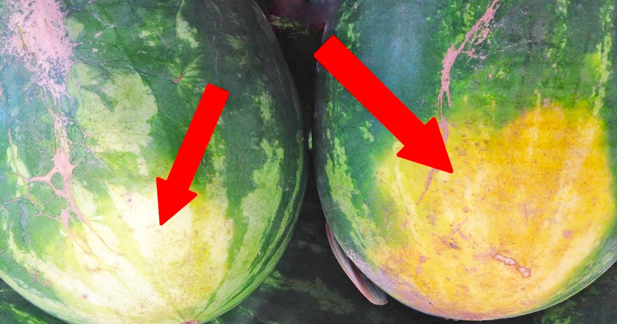 Арбузы растут на лозах, которые вьются по земле, поэтому на их нижней стороне, куда не попадает солнце, остаются светлые пятна. Возьмите арбуз и рассмотрите это пятно. Пятно кремово-желтого цвета говорит о том, что арбуз спелый. Если пятно белое или светло-зеленое, то, вероятно, арбуз неспелый. После того как арбуз сорвали, он не дозревает.