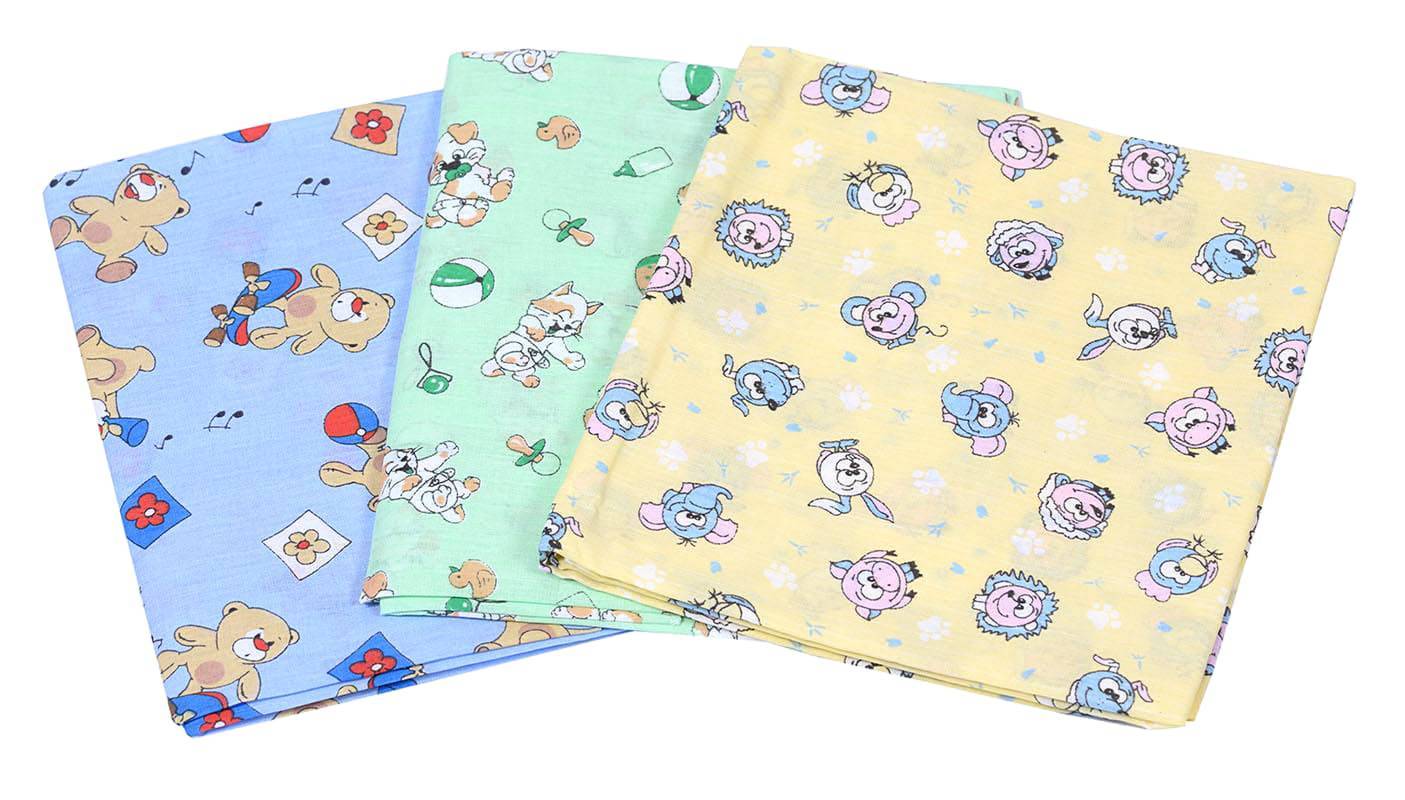 Сначала выбираем материал. Тонкие пеленки можно будет шить из ситца, а теплые из байка или фланели. Что касается расцветок, то здесь нет ограничений. Для девочек можно будет подобрать материю с цветочками и бабочками, а для мальчика сшить пеленки, украшенные машинками из современных мультфильмов.