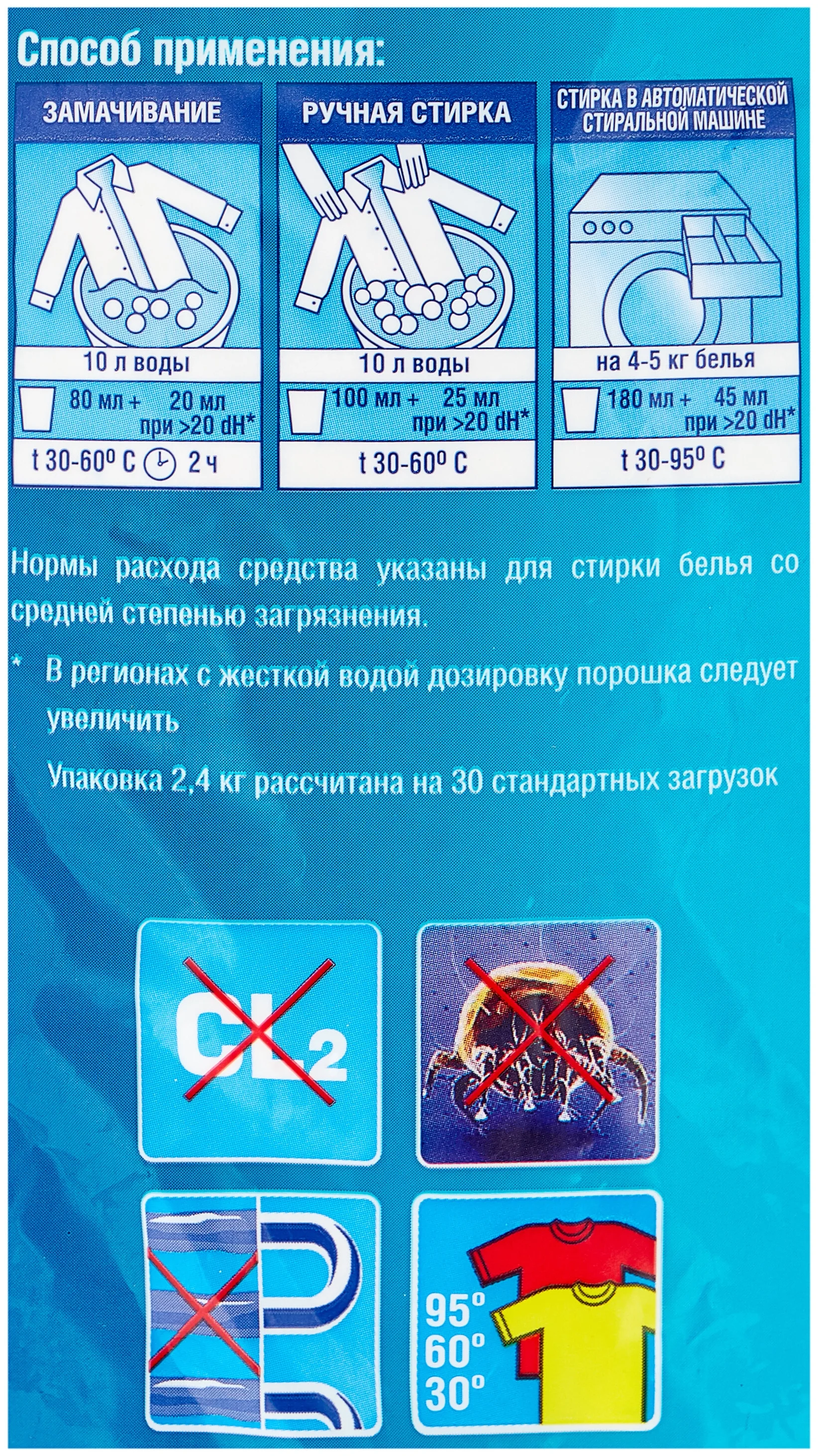- содержит: энзимы, пятновыводитель, отбеливатель