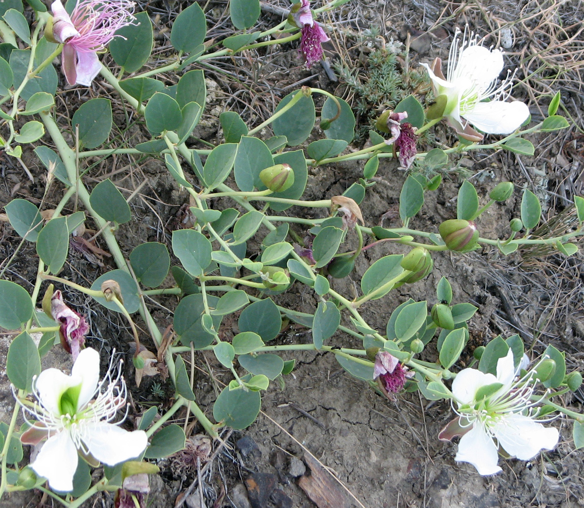 Когда каперсники распускаются, их бело-розовые цветы определяют облик больших территорий.