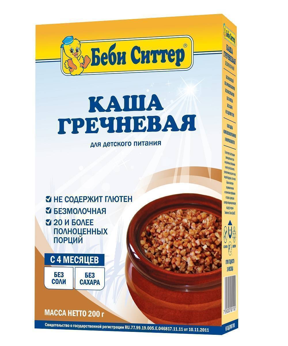 Начиная с 4-х месяцев малышу рекомендуется давать на прикорм такую гречневую производства Беби Ситтер.