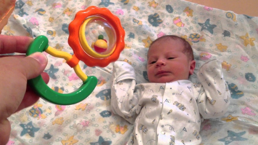 - фокусировка взгляда на крупной яркой игрушке;