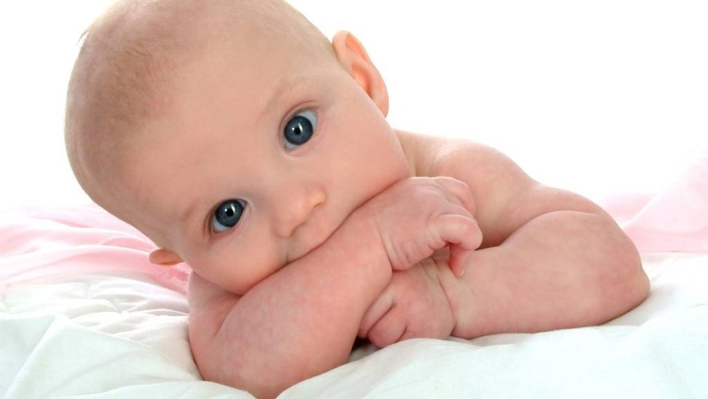 После 1,5 месяцев следует обязательно выкладывать кроху на животик. Он должен стараться держать головку.