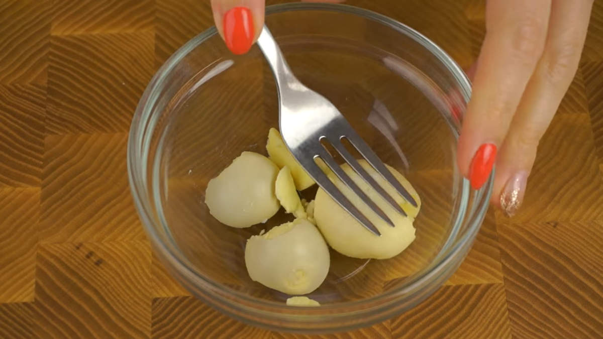 Картофель запеките. Разомните, перемешайте с теплым молоком. Придайте массе форму лепешки, в середине сделайте углубление. Влейте туда желток. Немного посолите. Запекайте в духовке, пока желток не станет твердым.