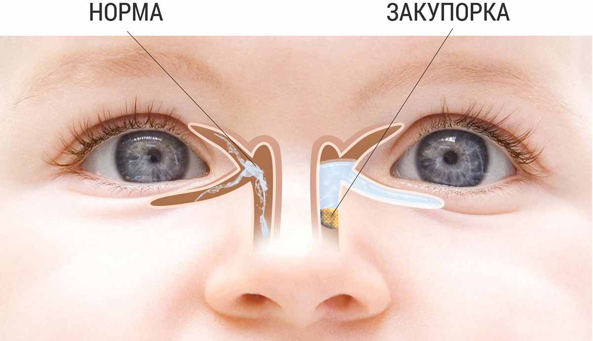 Во время формирования дыхательной системы эмбриона в утробе слезный канал закрыт тоненькой пленкой. Эта анатомическая особенность позволяет не попадать околоплодным водам в дыхательную систему. Родившись, малыш набирает в легкие воздух и впервые начинает плакать. Под давлением эпителиальная перегородка разрывается, делая проход по слезным каналам свободным. Если этого не происходит, то, подобно пробке, пленка закупоривает каналы, не давая проход слезам. В результате происходит застой и воспаление слезного мешка.