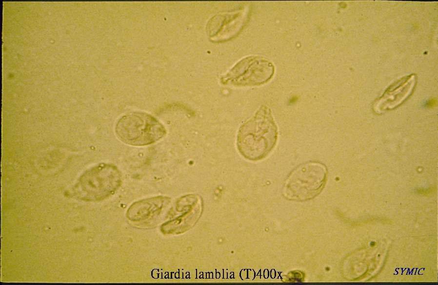 Lamblia intestinalis (лямблии) относится к классу жгутиковых. Лямблии паразитируют в тонкой кишке, преимущественно в двенадцатиперстной кишке, а также в жёлчном пузыре. Существование трофозоитов (вегетативная форма лямблий) требует жидкой среды, поэтому, попадая в толстую кишку, лямблии инцистируются, и в кале обнаруживают только цисты. Лишь при профузной диарее или после действия слабительных в испражнениях удаётся обнаружить вегетативные формы.